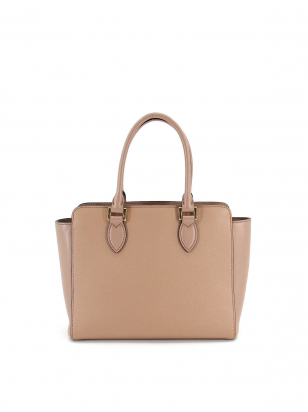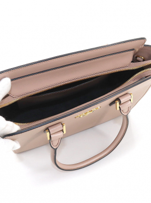 Beige Leather Shoulder Tote Handbag