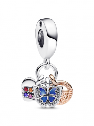Two-Tone Rainbow Heart, Butterfly & Peace Triple Dangle Charm
