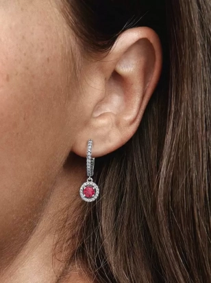 Red Round Sparkling Hoop Earrings
