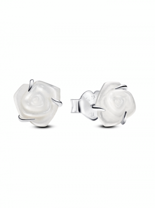 White Rose in Bloom Stud Earrings