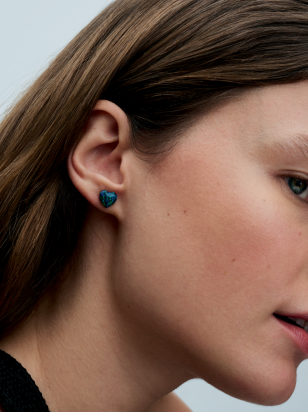 Opalescent Green Heart Stud Earrings